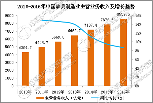 如今,辦公家具在我們的生活中越來(lái)越普遍,每個(gè)人都知道辦公家具是我們生活中不可或缺的一部分,近年來(lái),中國(guó)家具制造業(yè)主營(yíng)業(yè)收入逐年上升,據(jù)國(guó)家統(tǒng)計(jì)局的數(shù)據(jù)顯示,2017我國(guó)家具企業(yè)銷(xiāo)售穩(wěn)步增長(zhǎng),預(yù)測(cè)2018年中國(guó)家具制造業(yè)主營(yíng)業(yè)務(wù)收入將創(chuàng)新高。